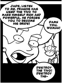 Francis has used a TIVO that records future programs to become rich and powerfull, forcing Jade to become his wife. No information is given about the rest of the PVP staff.